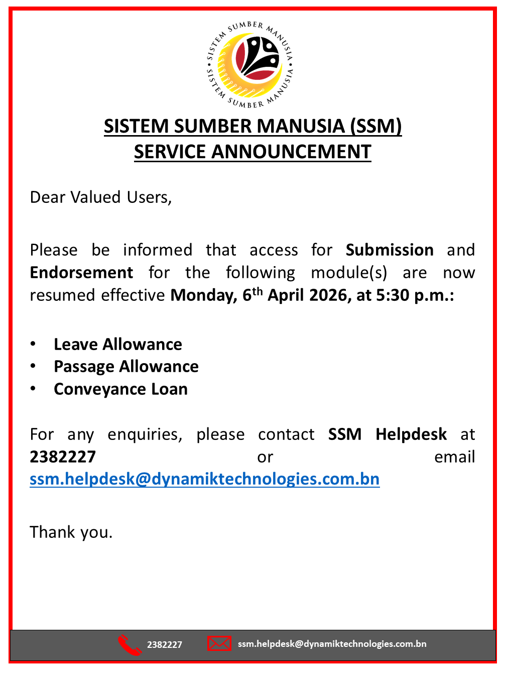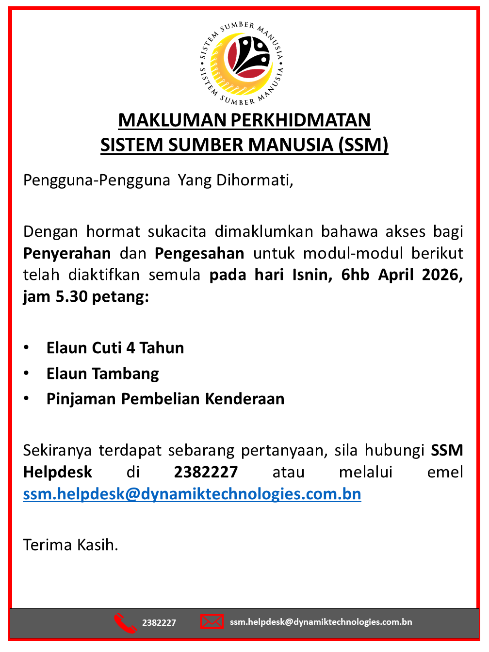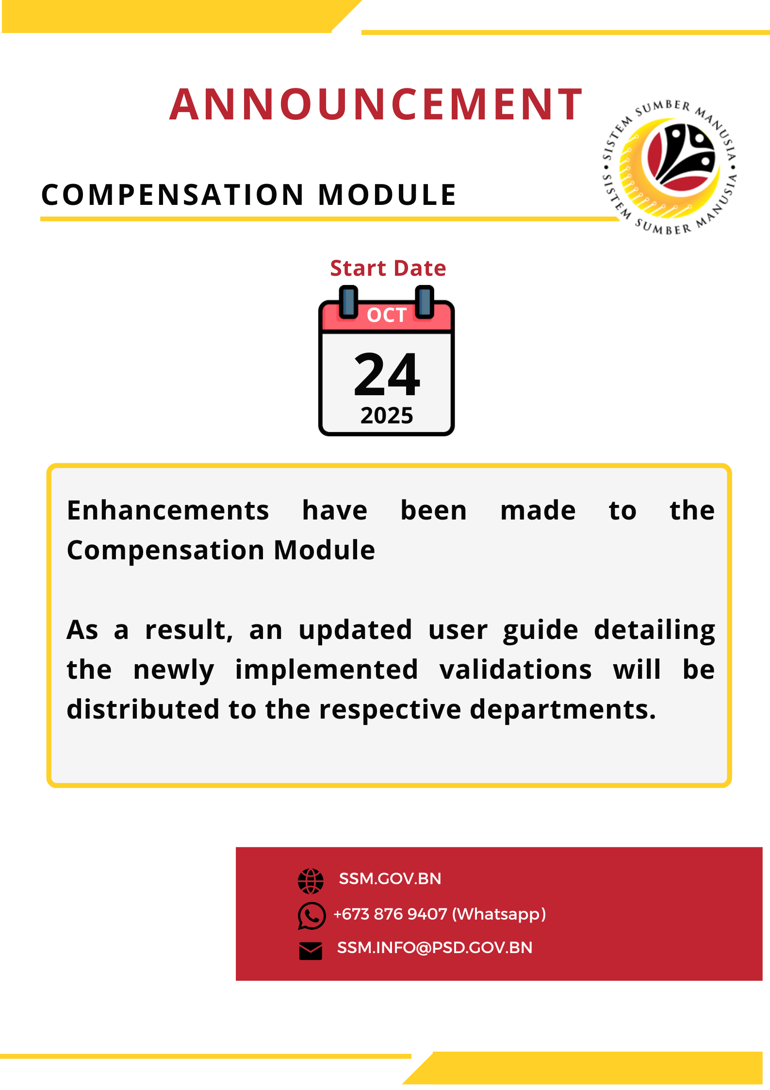 SSM akan menggantikan sepenuhnya sistem Pengurusan Sumber Manusia dan sistem Pembayaran gaji (Payroll) yang sedia ada. |